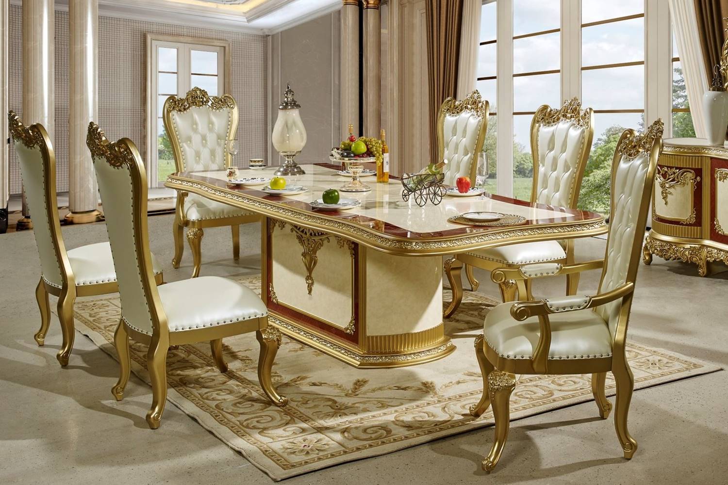 Spesifikasi Produk Meja Makan Mewah 6 Kursi Kayu Jati Emas: